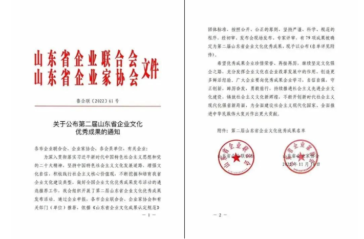 深入貫徹落實(shí)習(xí)近平新時(shí)代中國(guó)特色社會(huì)主義思想和黨的二十大精神,堅(jiān)持中國(guó)特色社會(huì)主義文化發(fā)展道路,增強(qiáng)文化自信,積極踐行社會(huì)主義核心價(jià)值觀,不斷挖掘和培育我省企業(yè)文化建設(shè)典型,做好全國(guó)企業(yè)文化優(yōu)秀成果發(fā)布活動(dòng)的遴選推薦工作。山東省企業(yè)聯(lián)合會(huì)、山東省企業(yè)家協(xié)會(huì)聯(lián)合開(kāi)展了第二屆山東省企業(yè)文化優(yōu)秀成果發(fā)布活動(dòng)。通過(guò)企業(yè)申報(bào),各市企業(yè)聯(lián)合會(huì)、企業(yè)家協(xié)會(huì)和有關(guān)部門(mén)(單位)推薦,依據(jù)《山東省企業(yè)文化成果認(rèn)定規(guī)范》團(tuán)體標(biāo)準(zhǔn),按照公開(kāi)、公正的原則,堅(jiān)持嚴(yán)謹(jǐn)、科學(xué)、規(guī)范的程序,經(jīng)初審、發(fā)布會(huì)現(xiàn)場(chǎng)發(fā)布、專家評(píng)審,有79項(xiàng)成果被確定為山東省企業(yè)文化優(yōu)秀成果,山東健源生物科技有限公司《“誠(chéng)”辦良心企業(yè),企業(yè)文化推動(dòng)科技創(chuàng)新》企業(yè)文化成果榮獲第二屆山東省企業(yè)文化優(yōu)秀成果二等獎(jiǎng)。